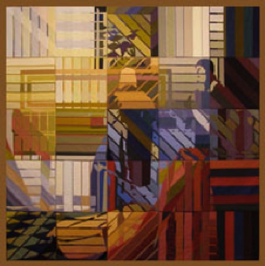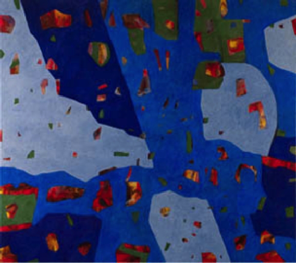 Unveiled Layers aptly conveys the underlying design principal these two artists use to create their work. While both create compositions by layering media and allowing each layer to emerge through the upper surfaces, their approaches are radically different.
