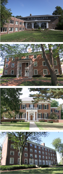Residence Halls — Cole Hall, College Hall, Martindale Hall, Morris Hall, and Wolcott Hall.