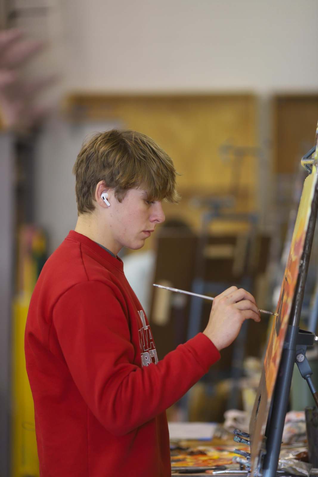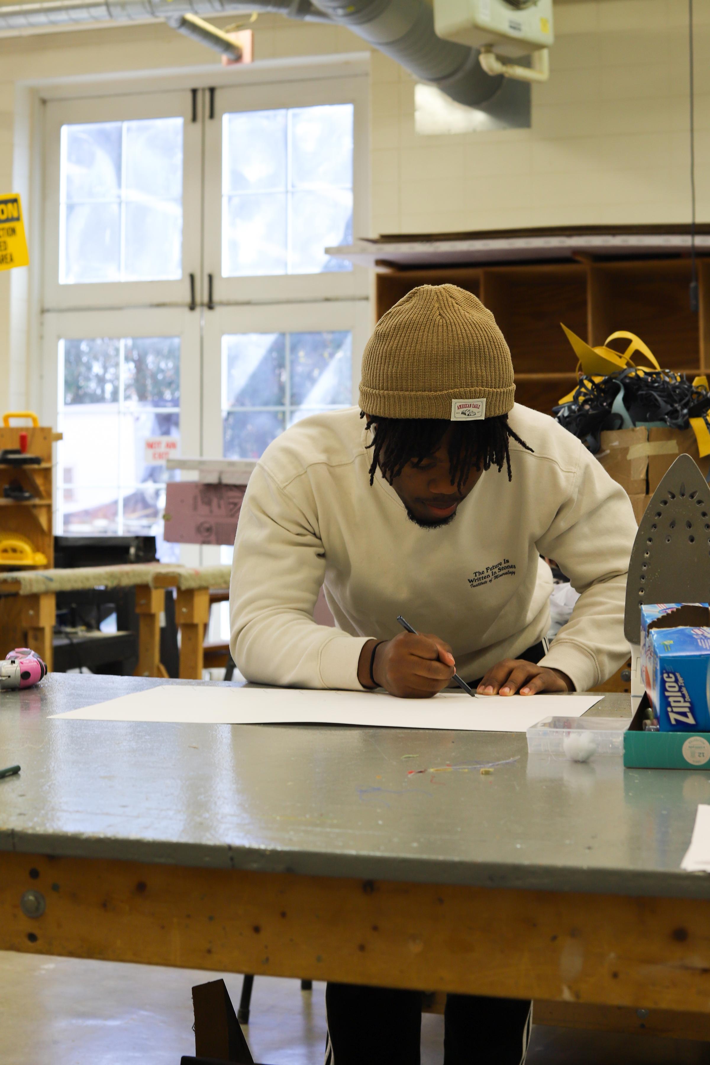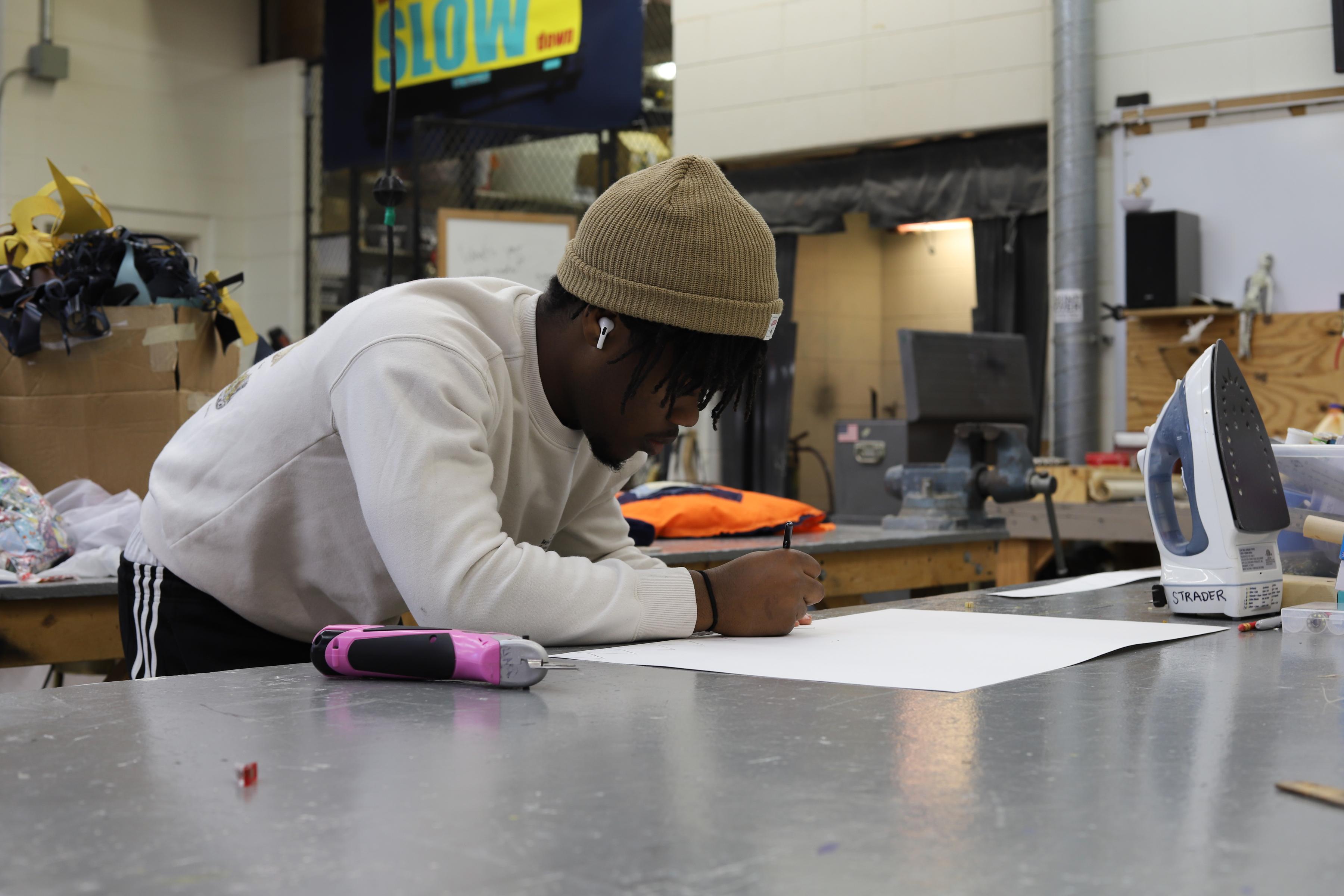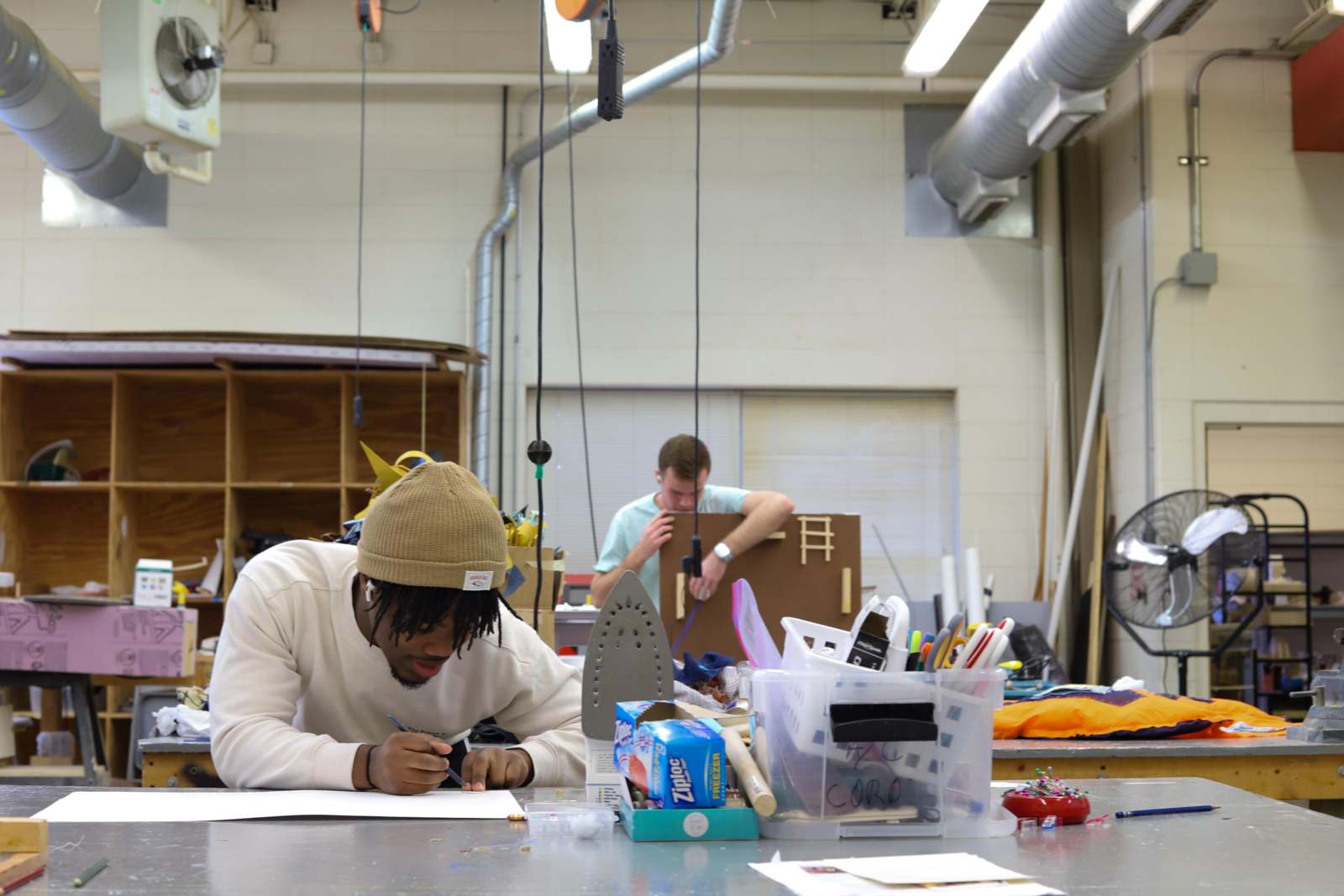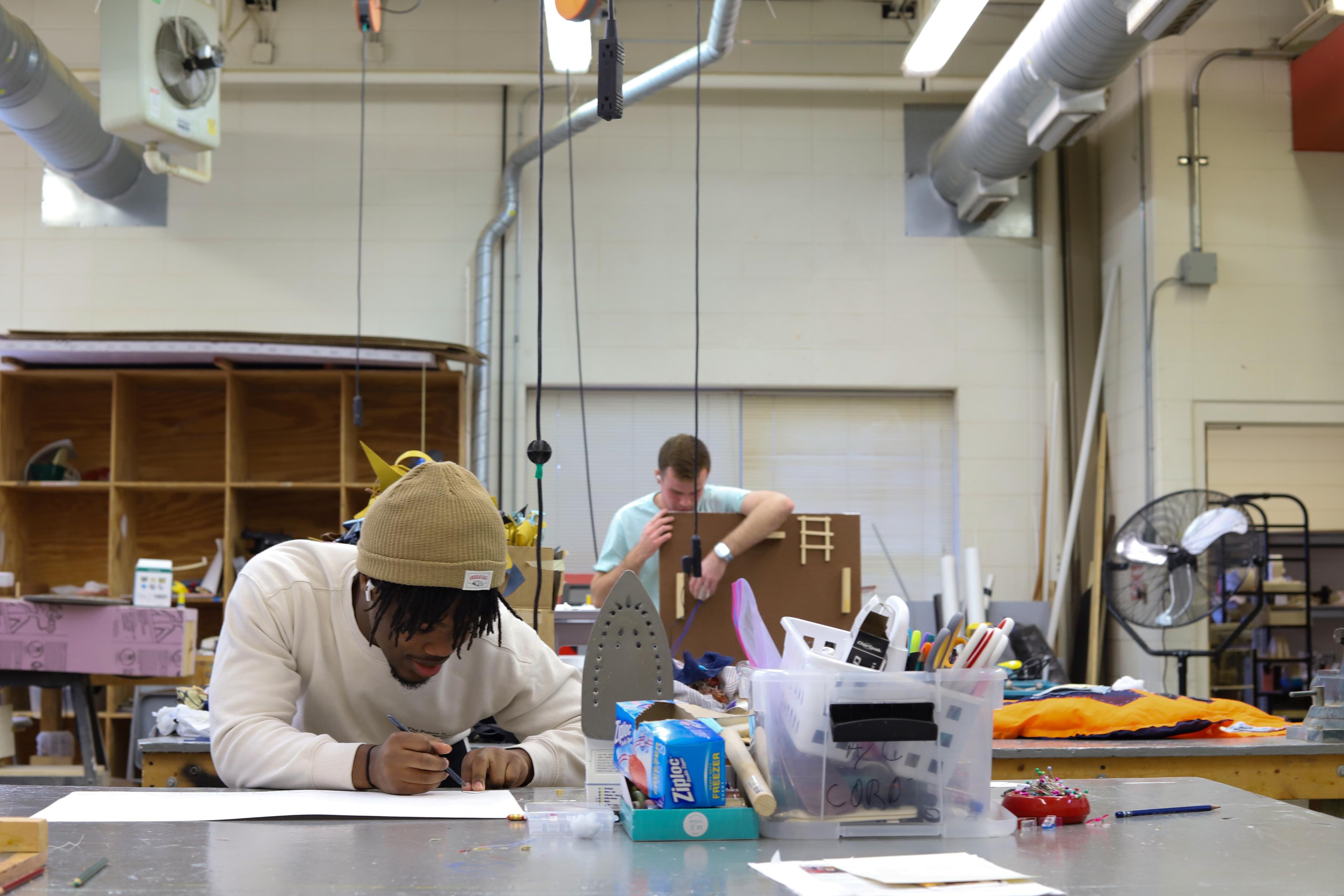 Students working on mixed media projects containing a motorized/moveable component.