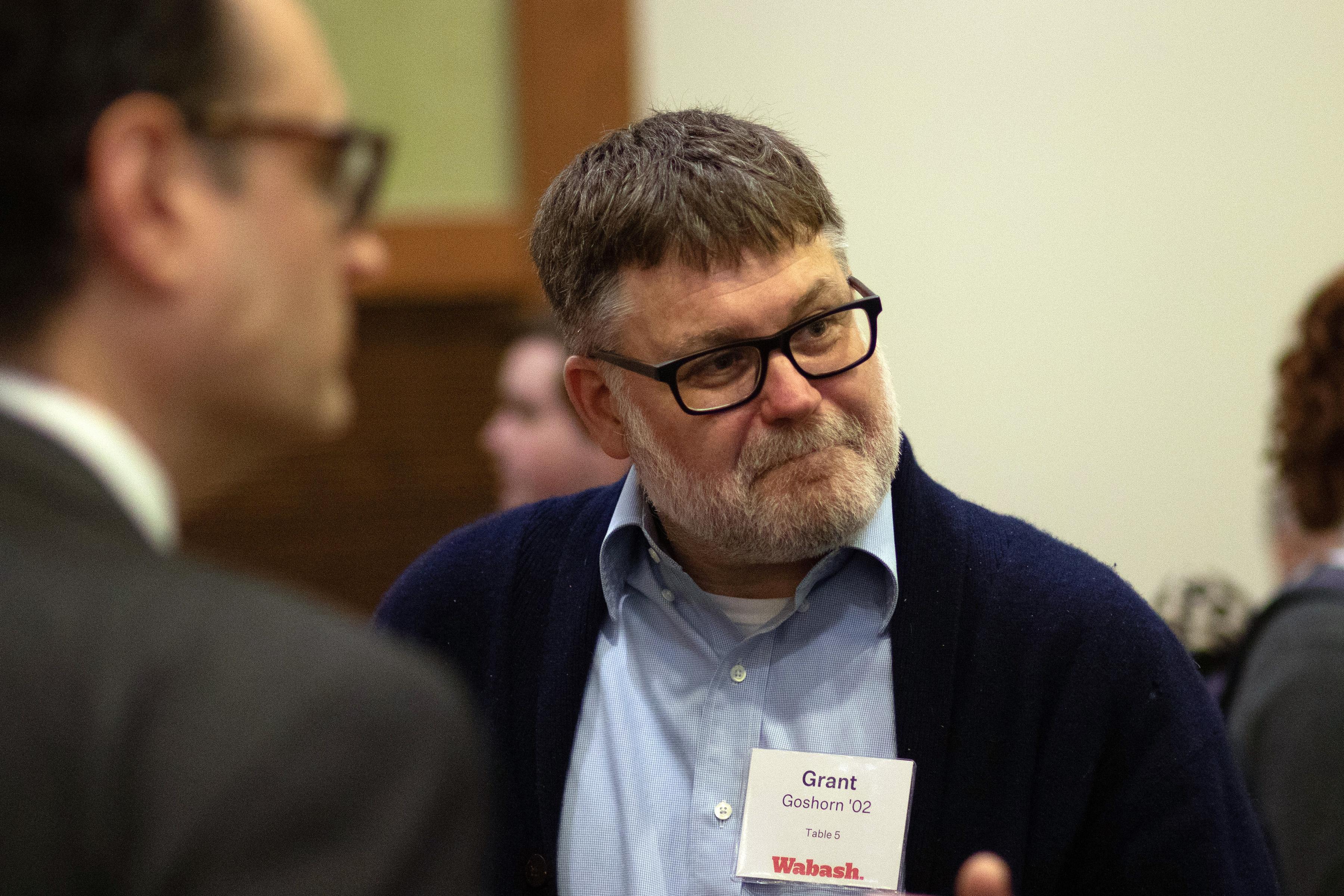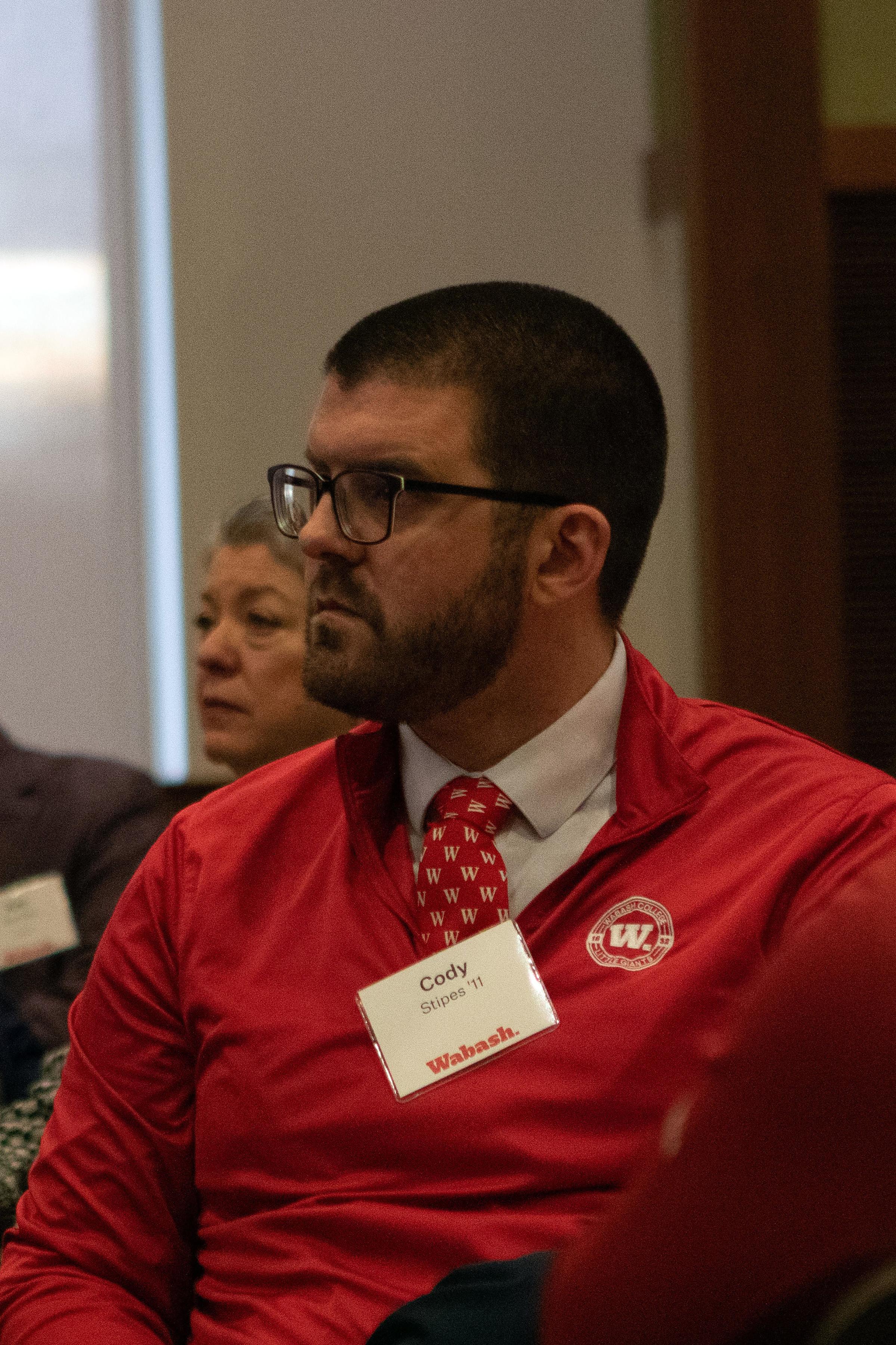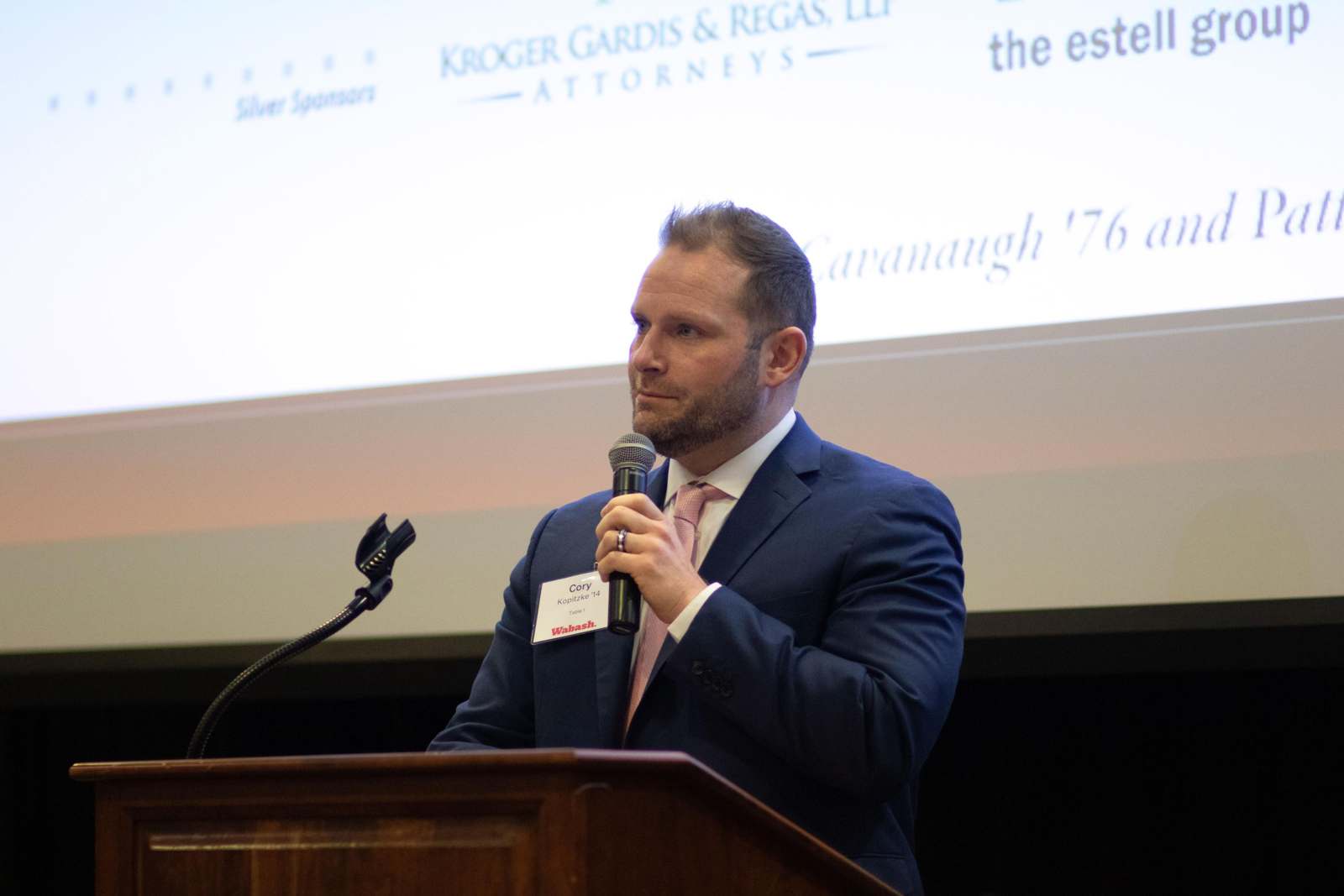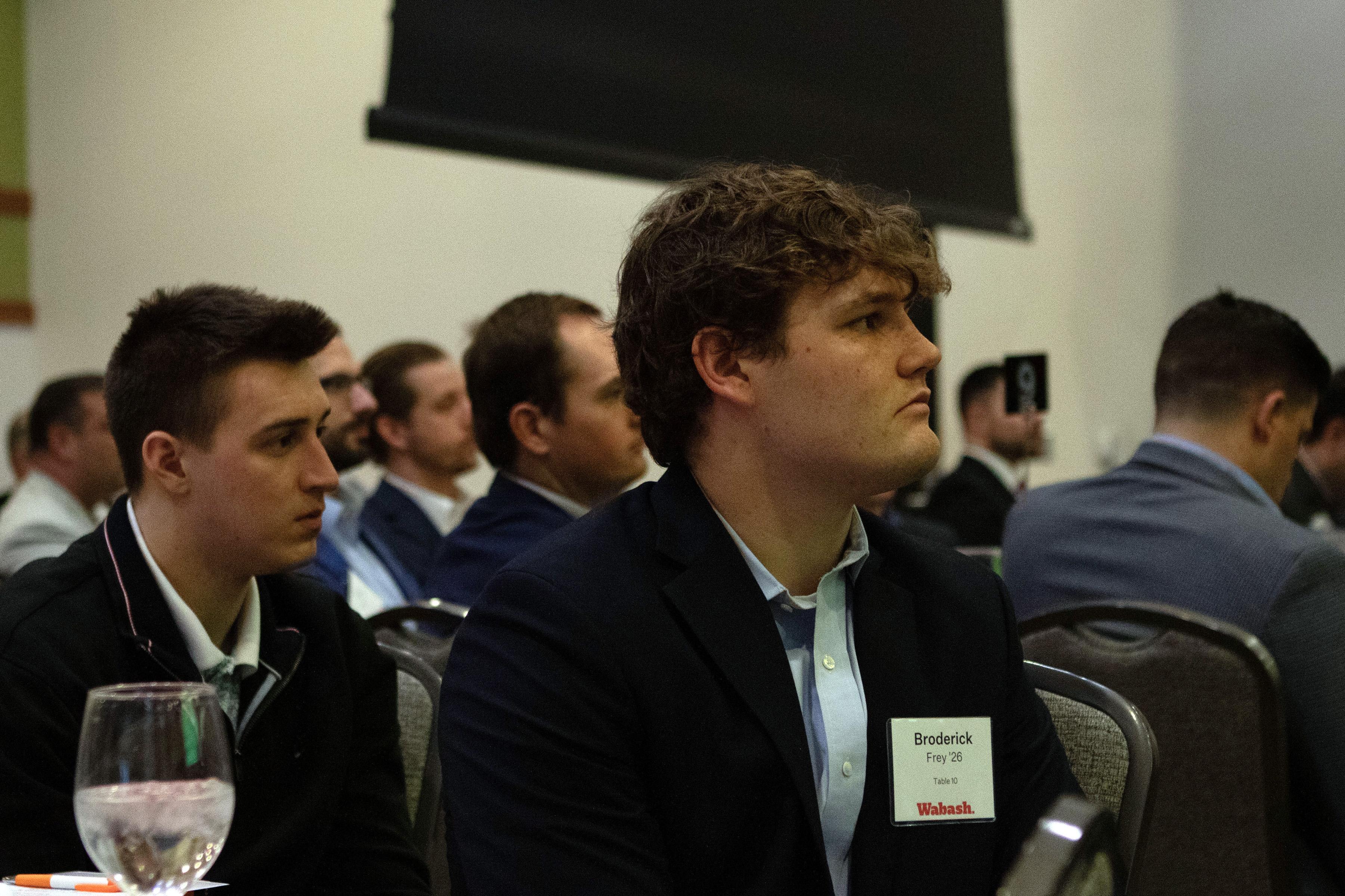 Selvio said, "On behalf of the Wabash Club of Indianapolis, thank you for being here. Seeing this room filled as it is, with alumni, friends, and supporters of Wabash is energizing. Events like this are a powerful reminder of what Wabash College is, and it's not just simply a place we attend. It is a community we carry with us. I want to offer my sincere thanks to the speakers, to our guests, and those who work behind the scenes. These gatherings never happen by accident. They are the result of generosity, volunteerism, and a shared belief that our relationships matter."