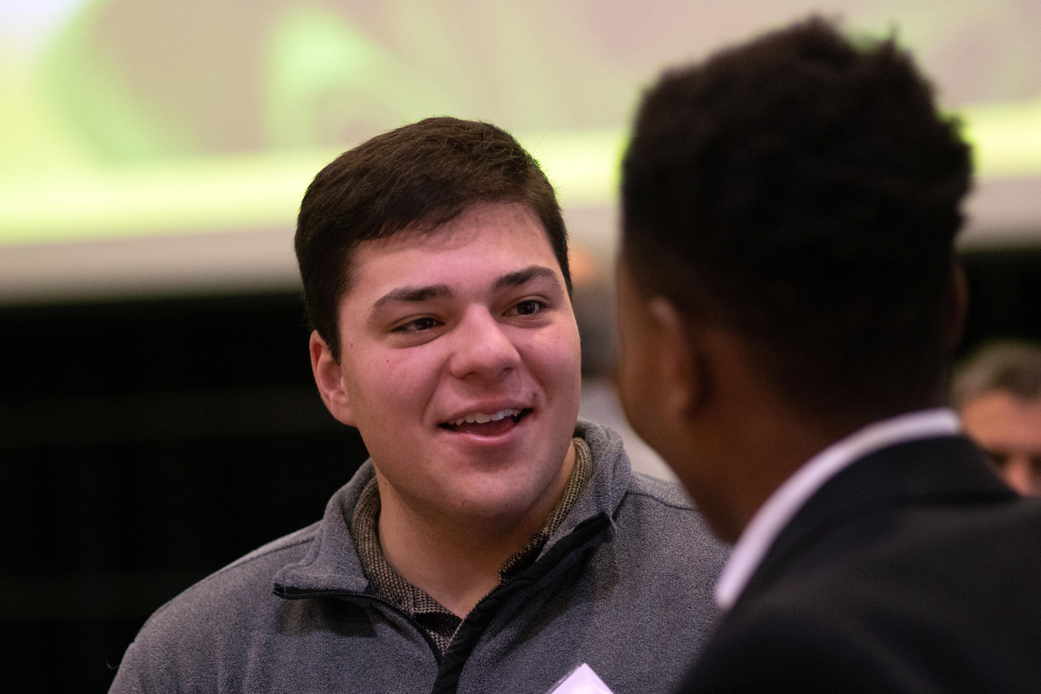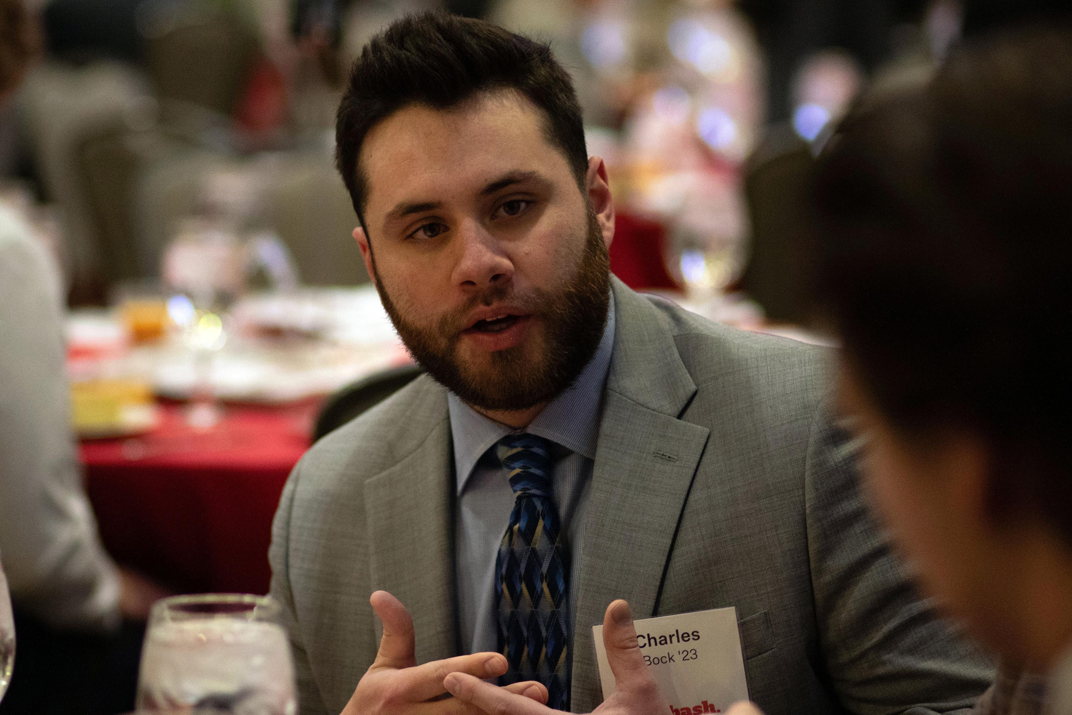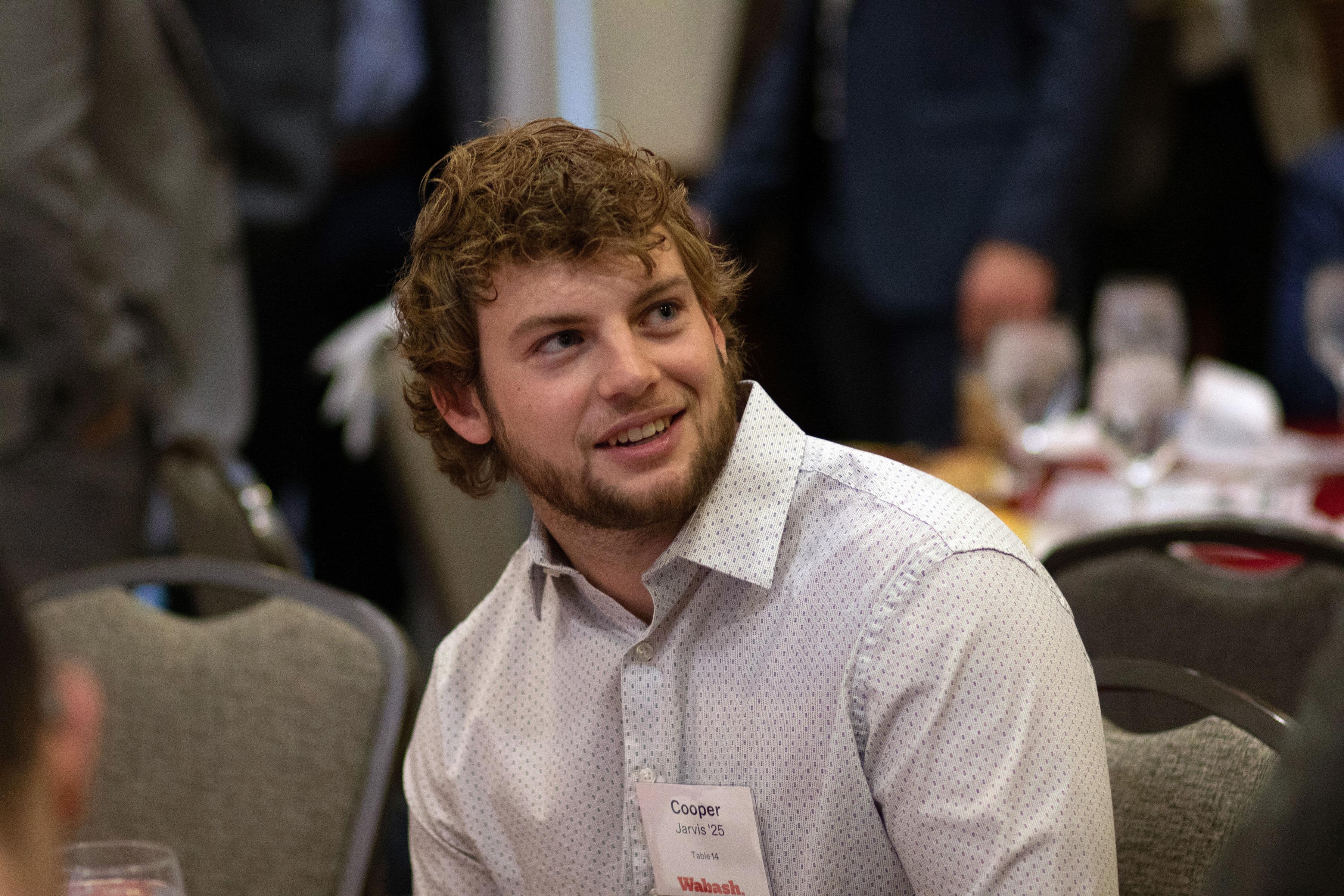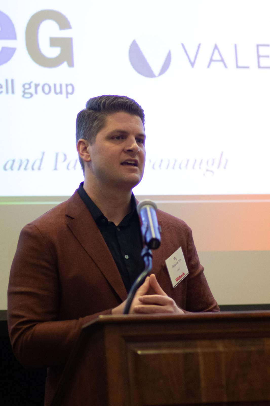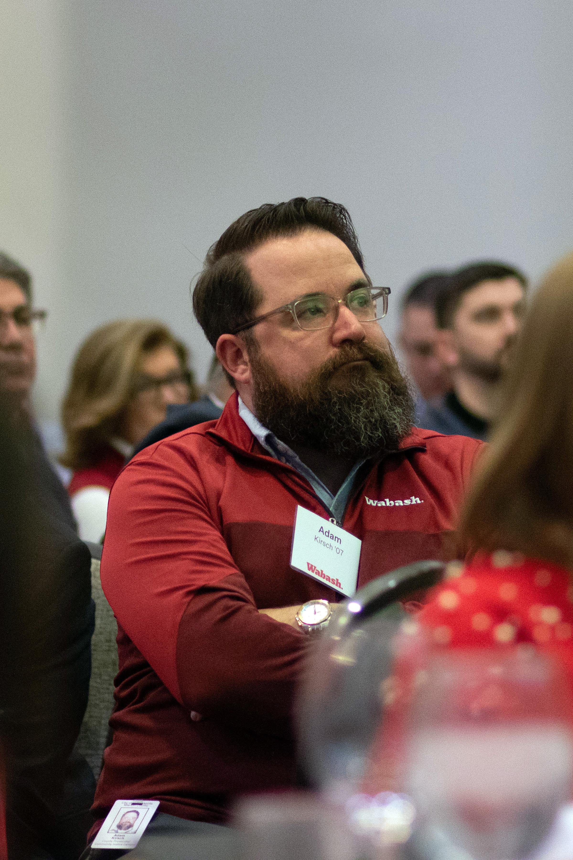 Selvio said, "On behalf of the Wabash Club of Indianapolis, thank you for being here. Seeing this room filled as it is, with alumni, friends, and supporters of Wabash is energizing. Events like this are a powerful reminder of what Wabash College is, and it's not just simply a place we attend. It is a community we carry with us. I want to offer my sincere thanks to the speakers, to our guests, and those who work behind the scenes. These gatherings never happen by accident. They are the result of generosity, volunteerism, and a shared belief that our relationships matter."