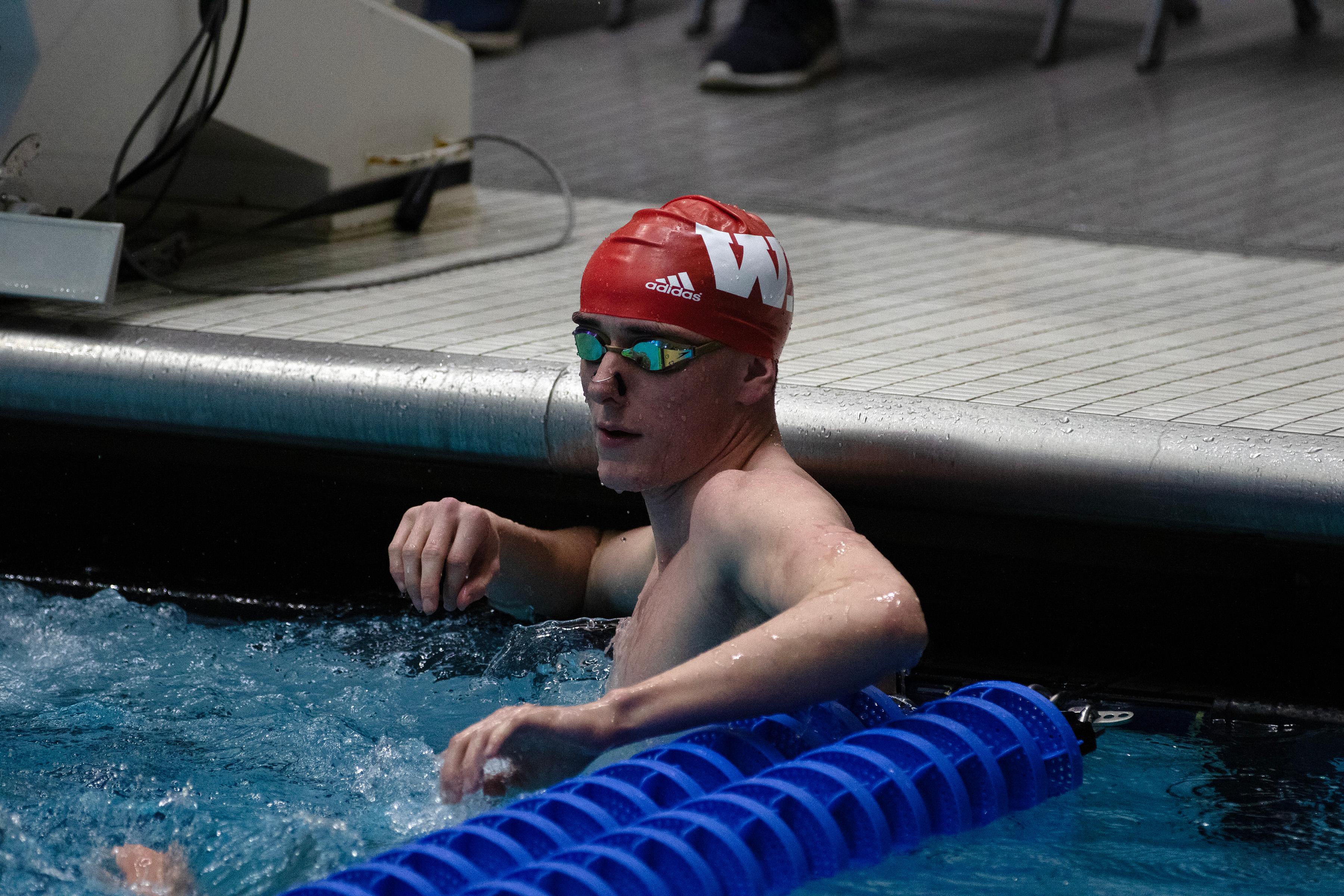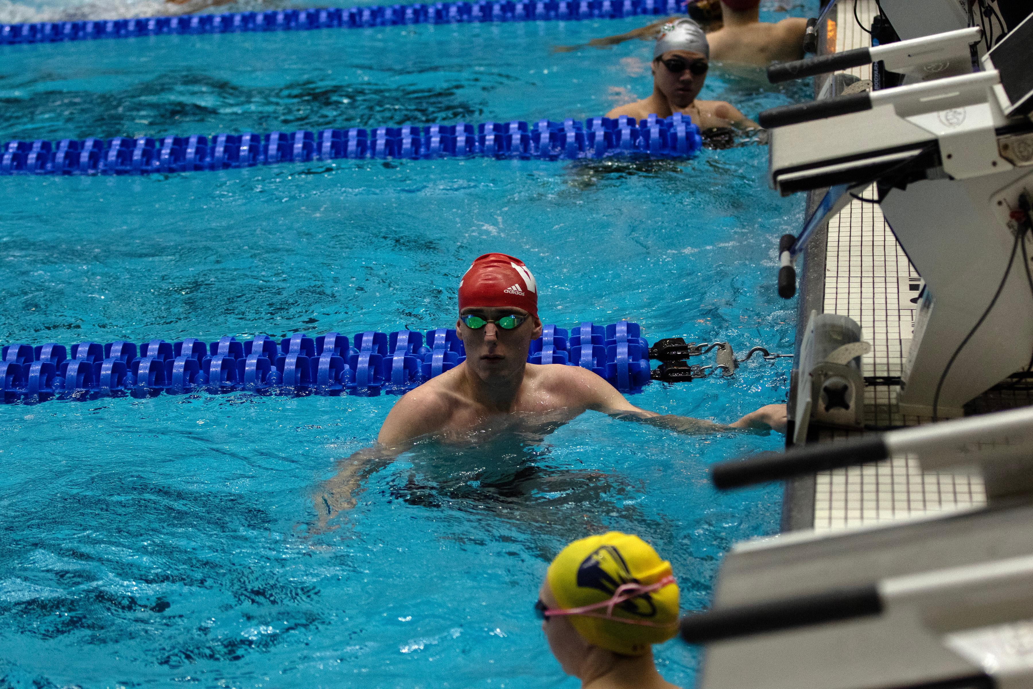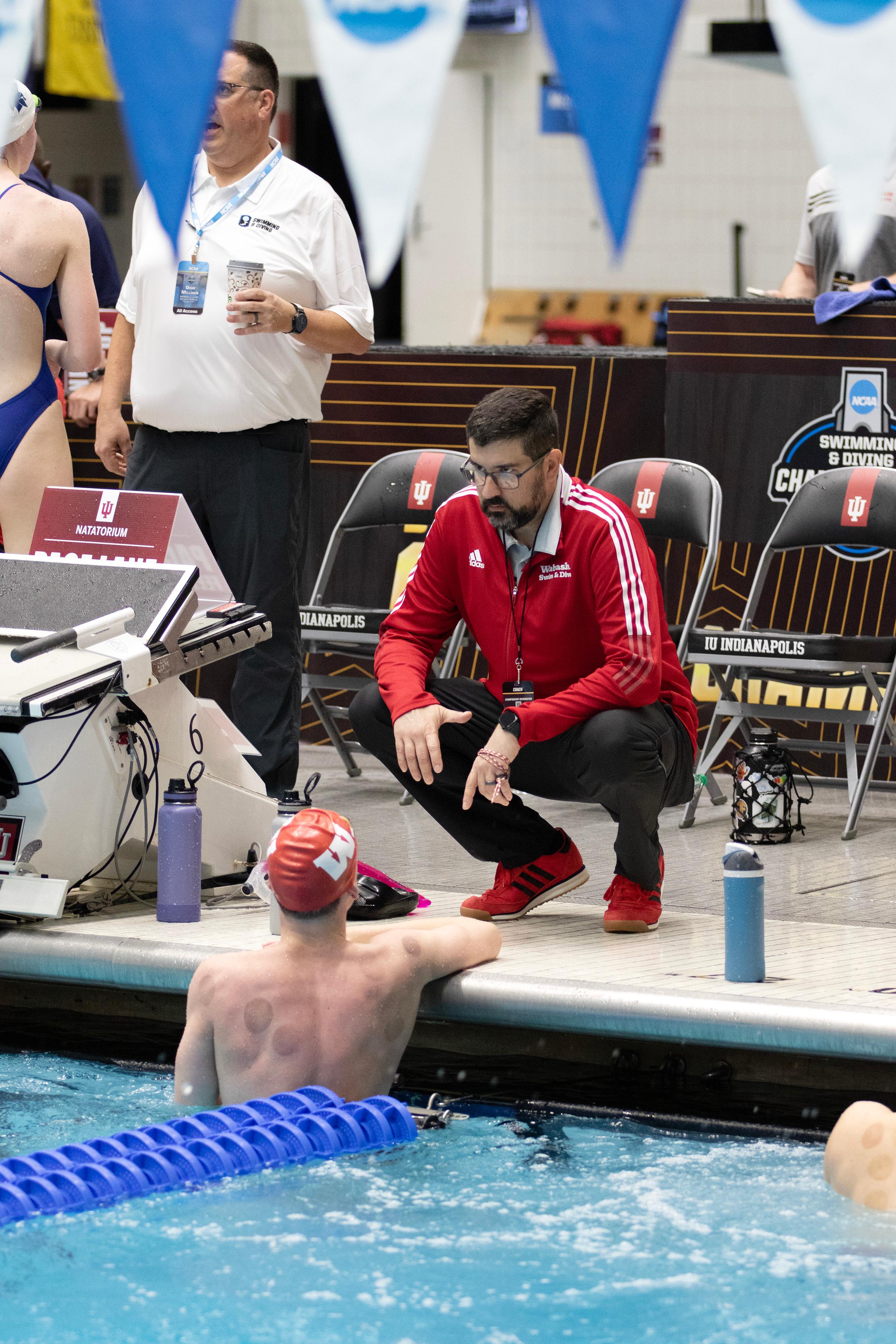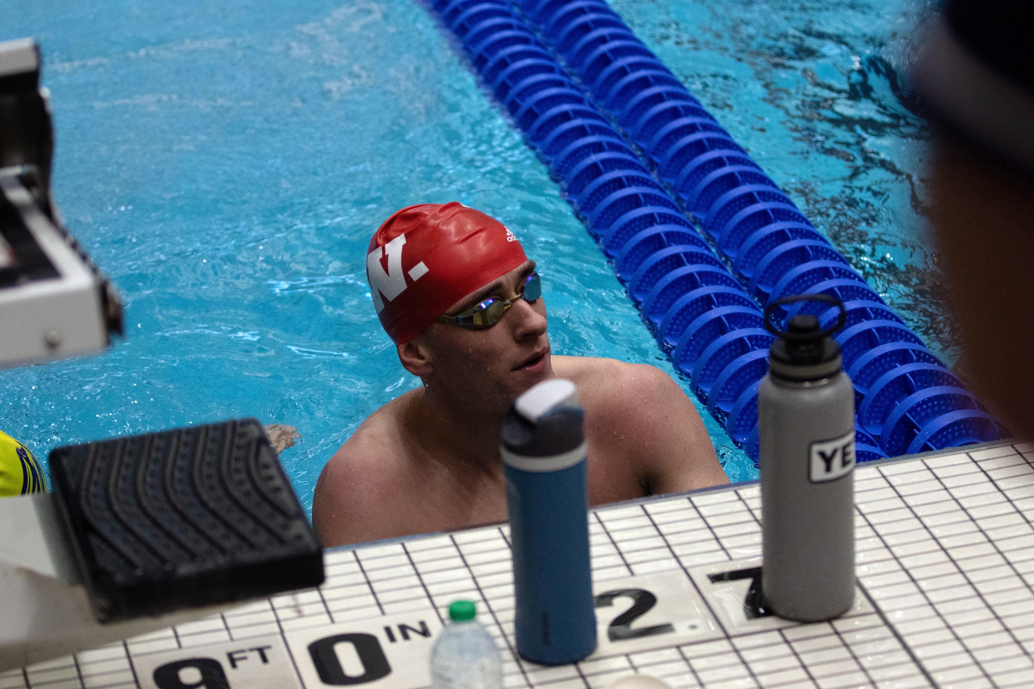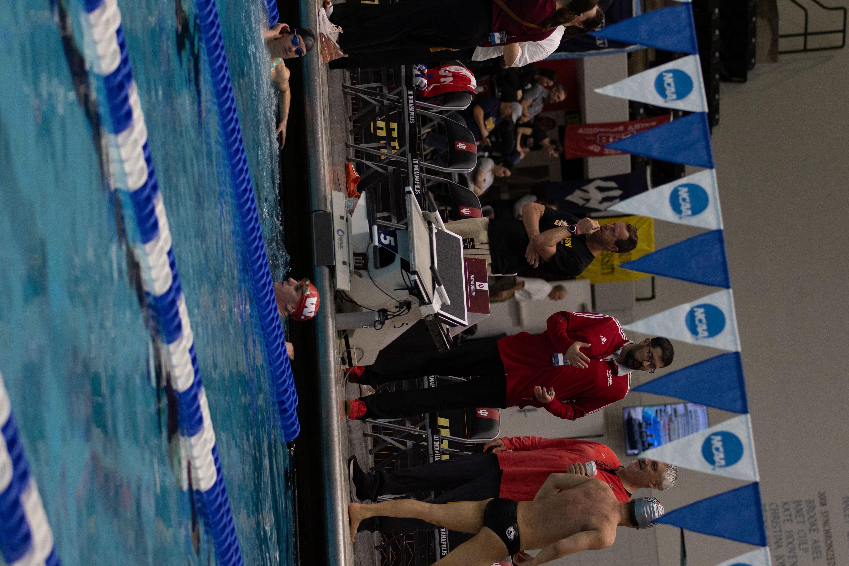 2026 NCAC champion in the 200-yard backstroke, Ryan West '28 participated in the 2026 NCAA Division III Swimming and Diving Championships in Indianapolis. The native of Apex, North Carolina, swam in three events during the event. The photos presented here are laeding up to and through his Friday swim in the 100-yard backstroke.